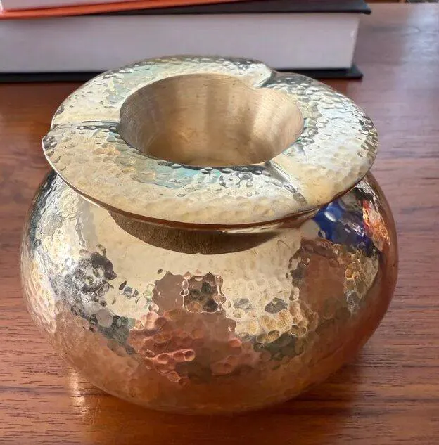 This handcrafted solid brass ashtray is more than just a functional object; it is a piece of art that brings a touch of Moroccan elegance to your home. Each piece is meticulously hand-hammered by our skilled artisans using traditional techniques passed down through generations of my family. The heavy, solid brass construction ensures lifelong durability, while the unique hammered texture catches the light beautifully, making it a standout addition to any office, lounge, or patio. Over time, the brass will develop a rich, natural patina that only adds to its authentic vintage character.